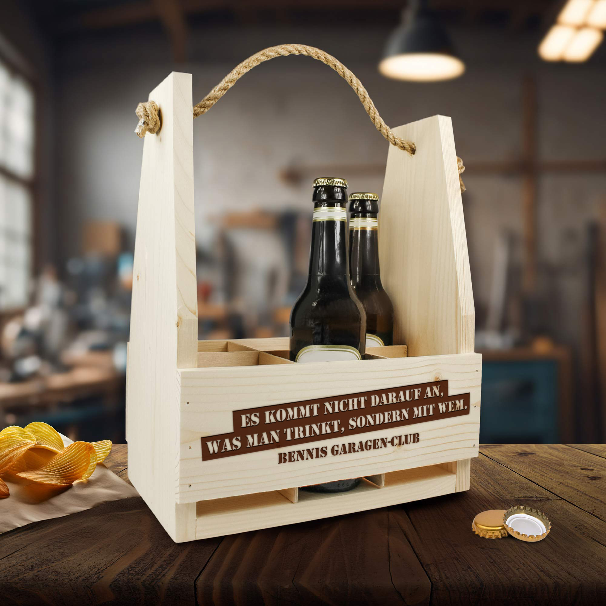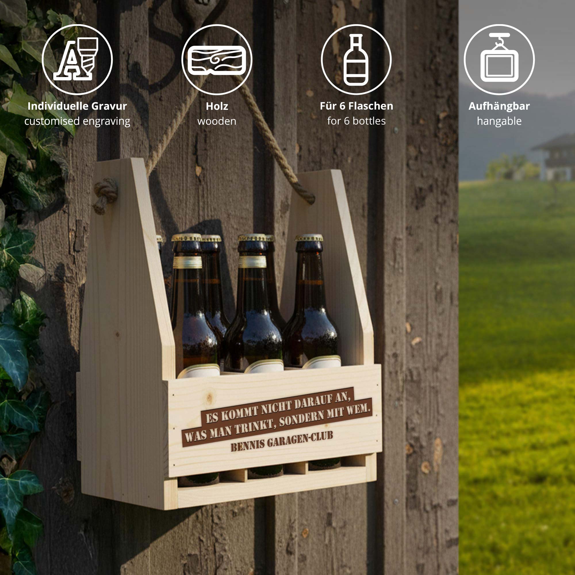 - Bierflaschenträger mit Spruch und frei wählbarem Wunschtext