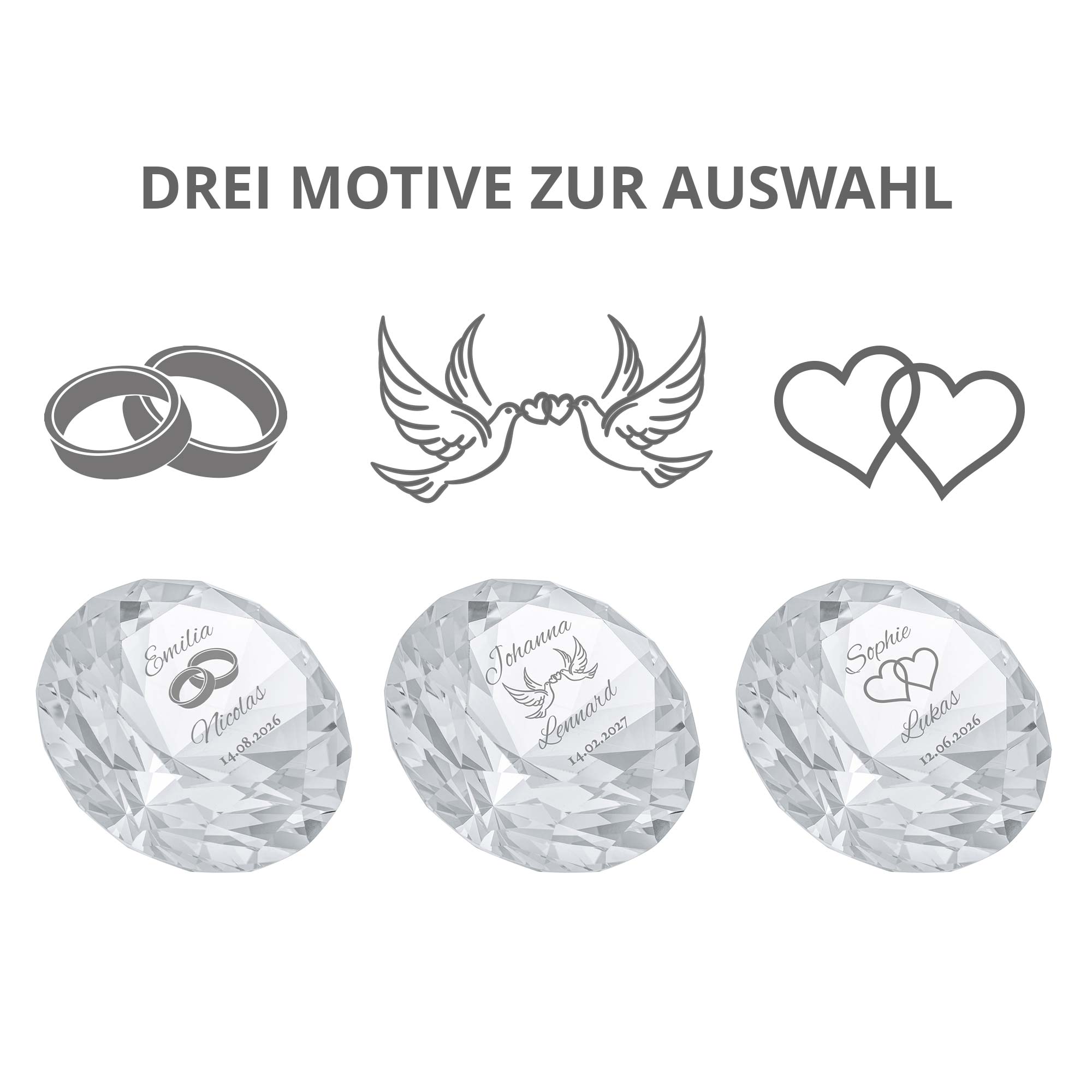 Diamant Kristall mit Gravur zur Hochzeit - Personalisiert