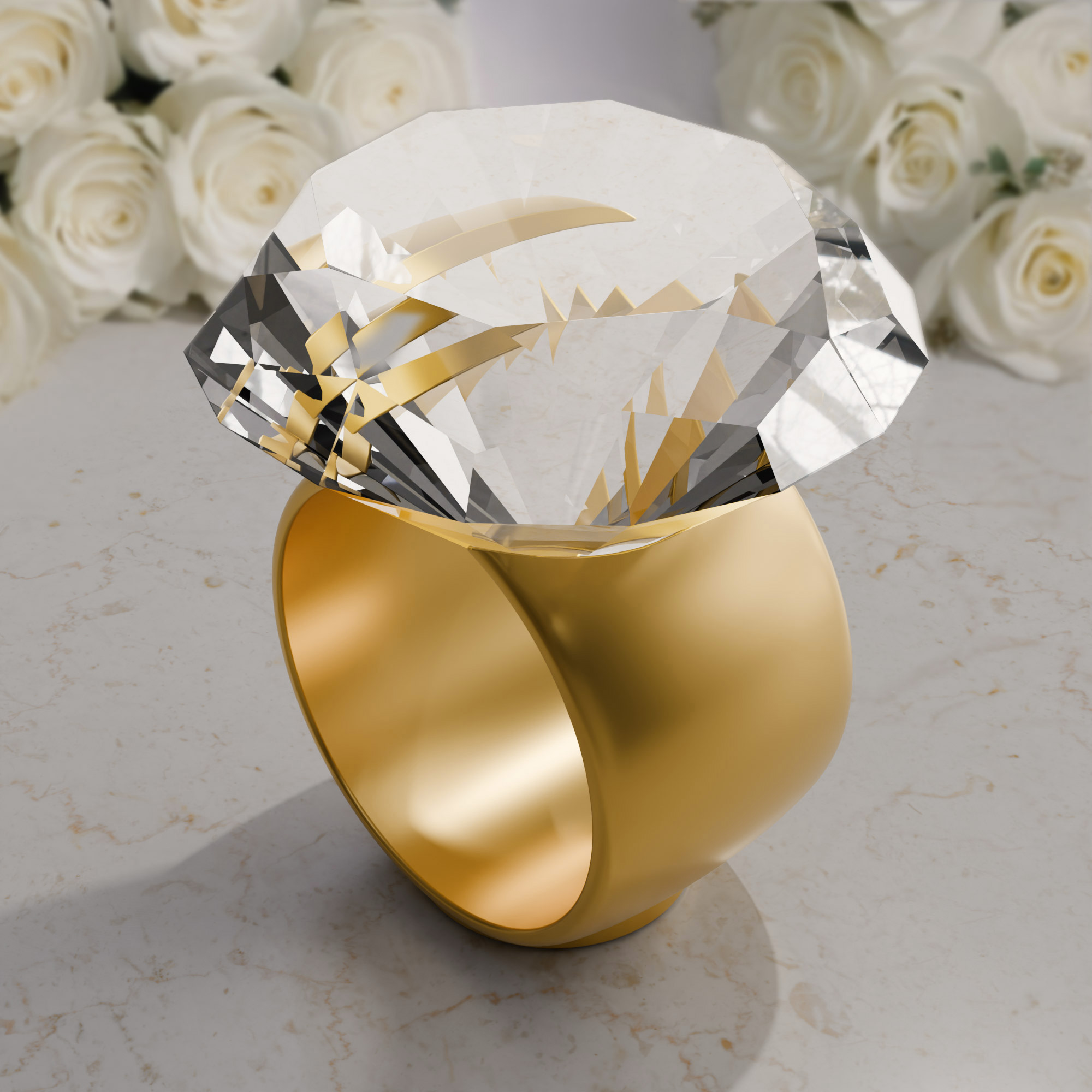 - Zusammen mit dem Kristall bildet der Displayständer einen übergroßen Diamantring