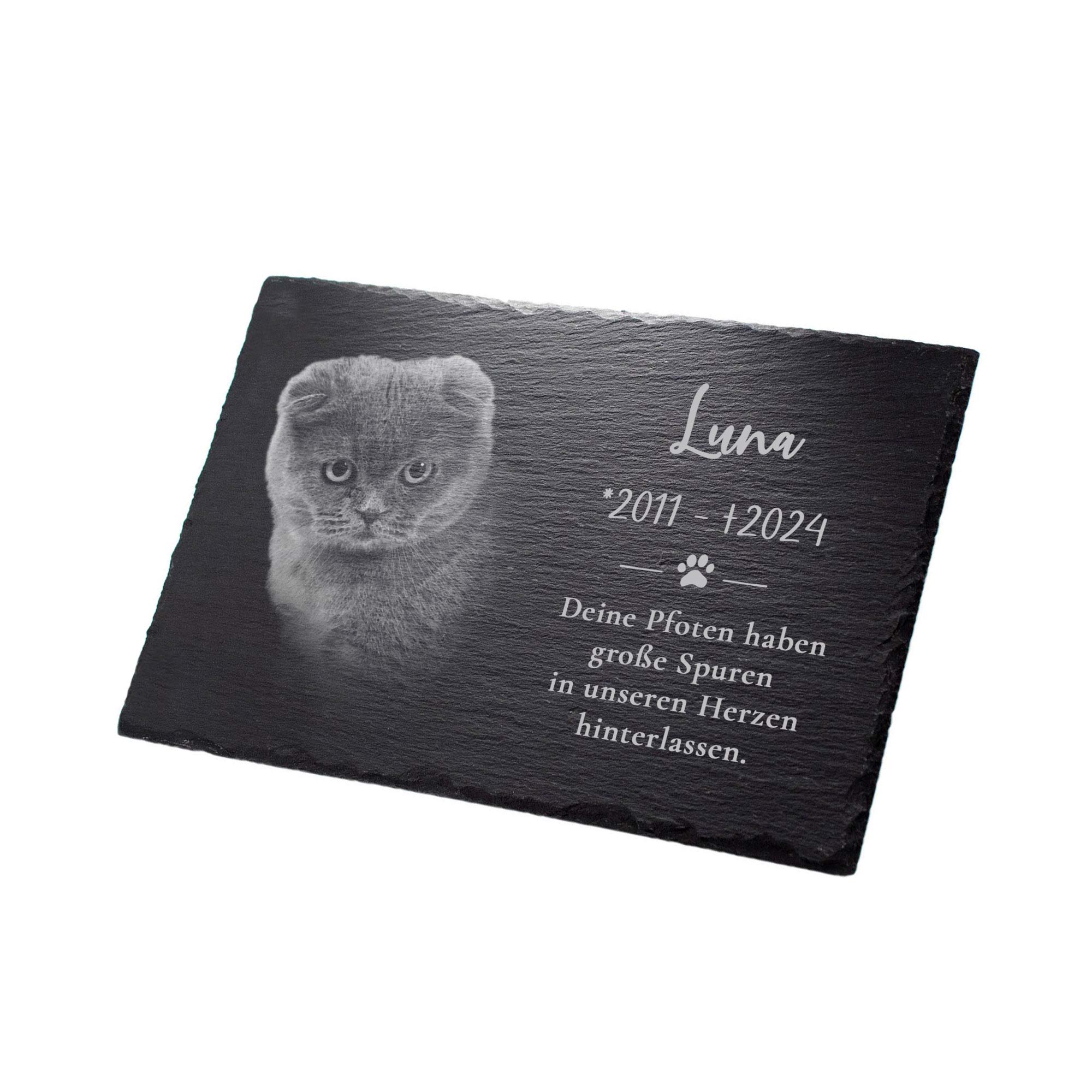 Grabplatte zur Trauer Hund & Katze - Schiefer Gedenktafel mit Foto