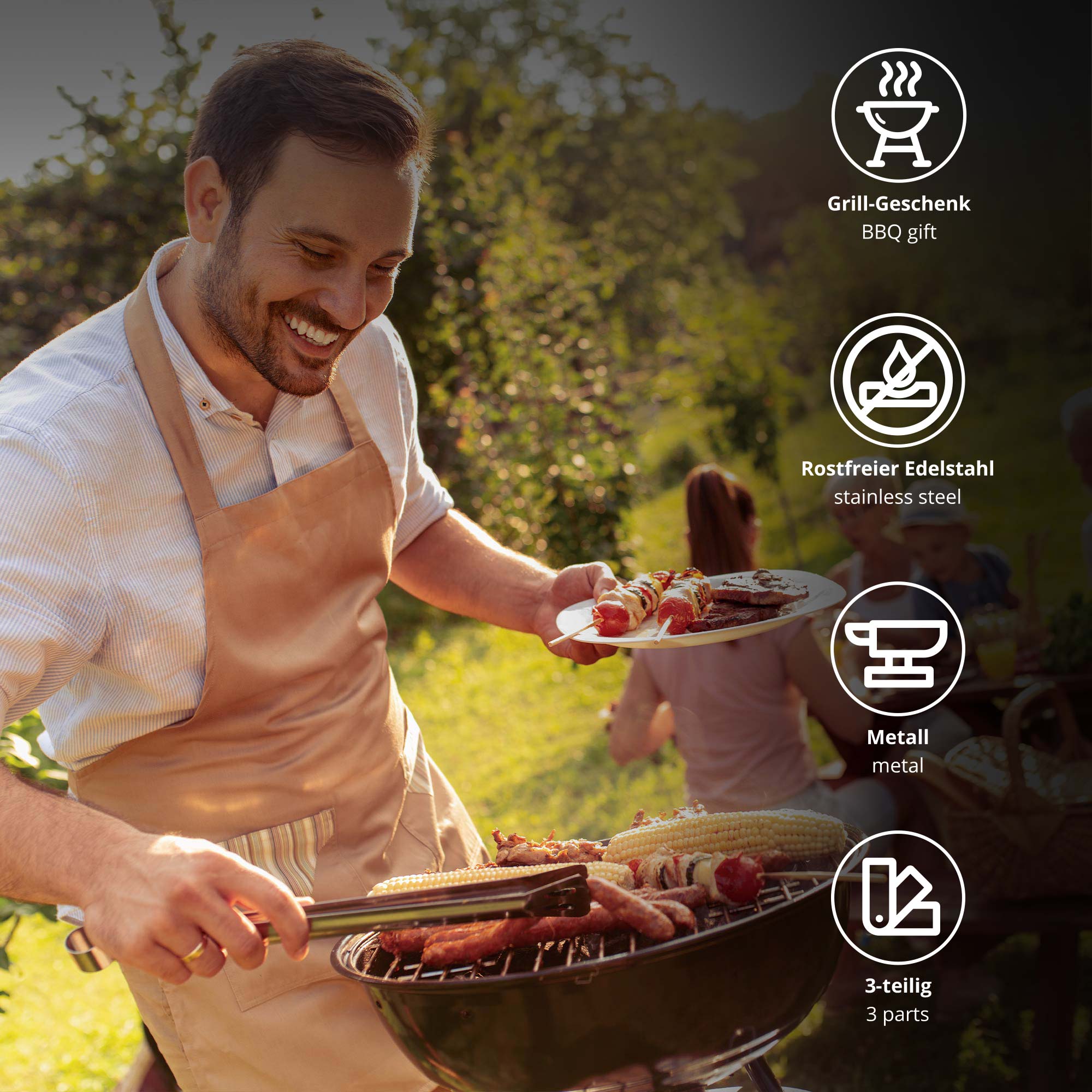 Mit den richtigen Werkzeugen gelingt jedes Werk besser - oder zumindest leichter. Unser Grillset - Grillbesteck im Koffer und Schneidebrett mit Gravur - Grillmeister, beispielsweise, enthält alles, was das Grillen leichter und schöner macht. Der schicke Grillkoffer aus Edelstahl enthält drei wichtige Grillaccessoires, nämlich eine Zange, einen Spatel und eine Grillgabel. Das individuell gravierte Brett dagegen ist nicht nur ein schönes, persönlliches Geschenk für Männer und sonstige Grillfreunde und Grillfreundinnen, sondern bietet auch ausreichend Platz für die Zubereitung der grillbaren Köstlichkeiten.
