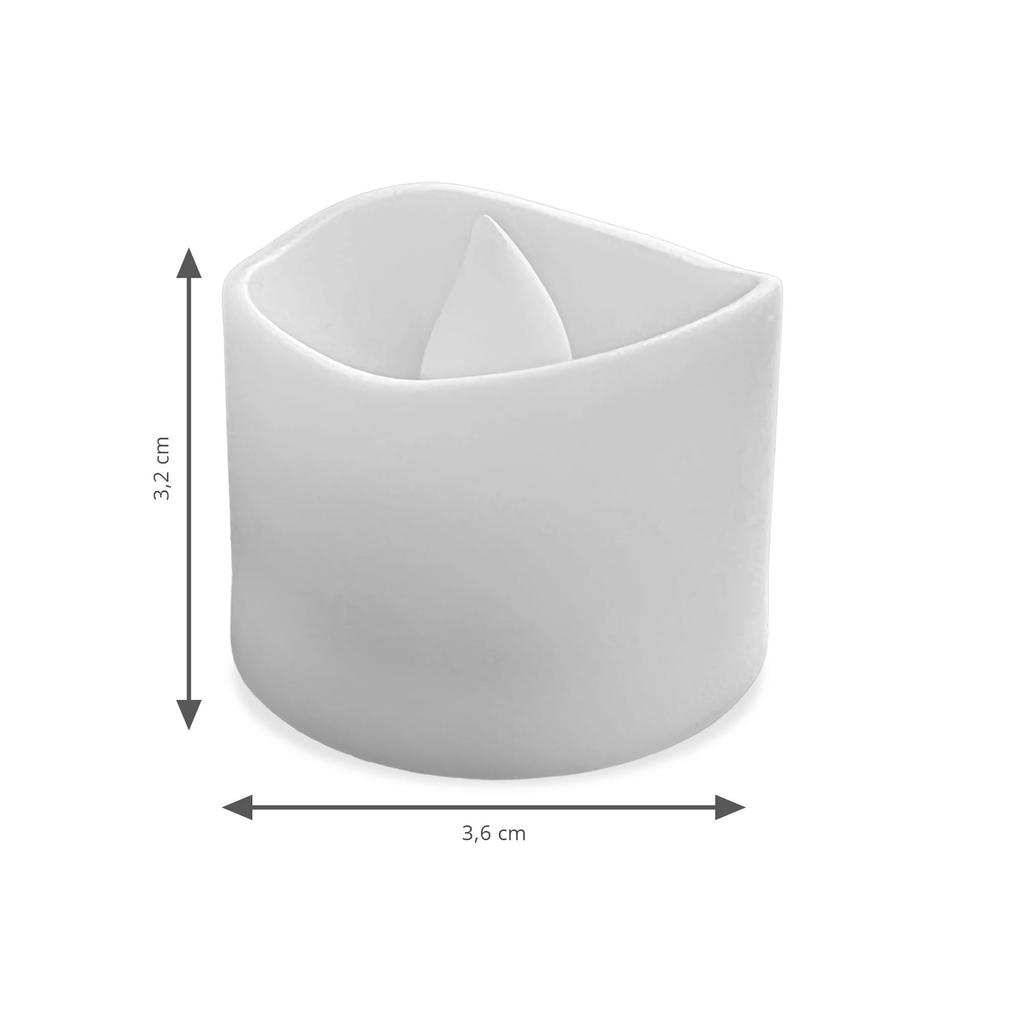 Dieses kompakte LED Teelicht ist eine sichere und stimmungsvolle Alternative zur klassischen Kerze. Die LED-Flamme leuchtet in einem warmen Weiß und erzeugt ein sanft flackerndes Licht, das echten Kerzen täuschend ähnlich sieht. Perfekt geeignet für stimmungsvolle Dekorationen oder Gedenkmomente mit liebevoller Atmosphäre.
