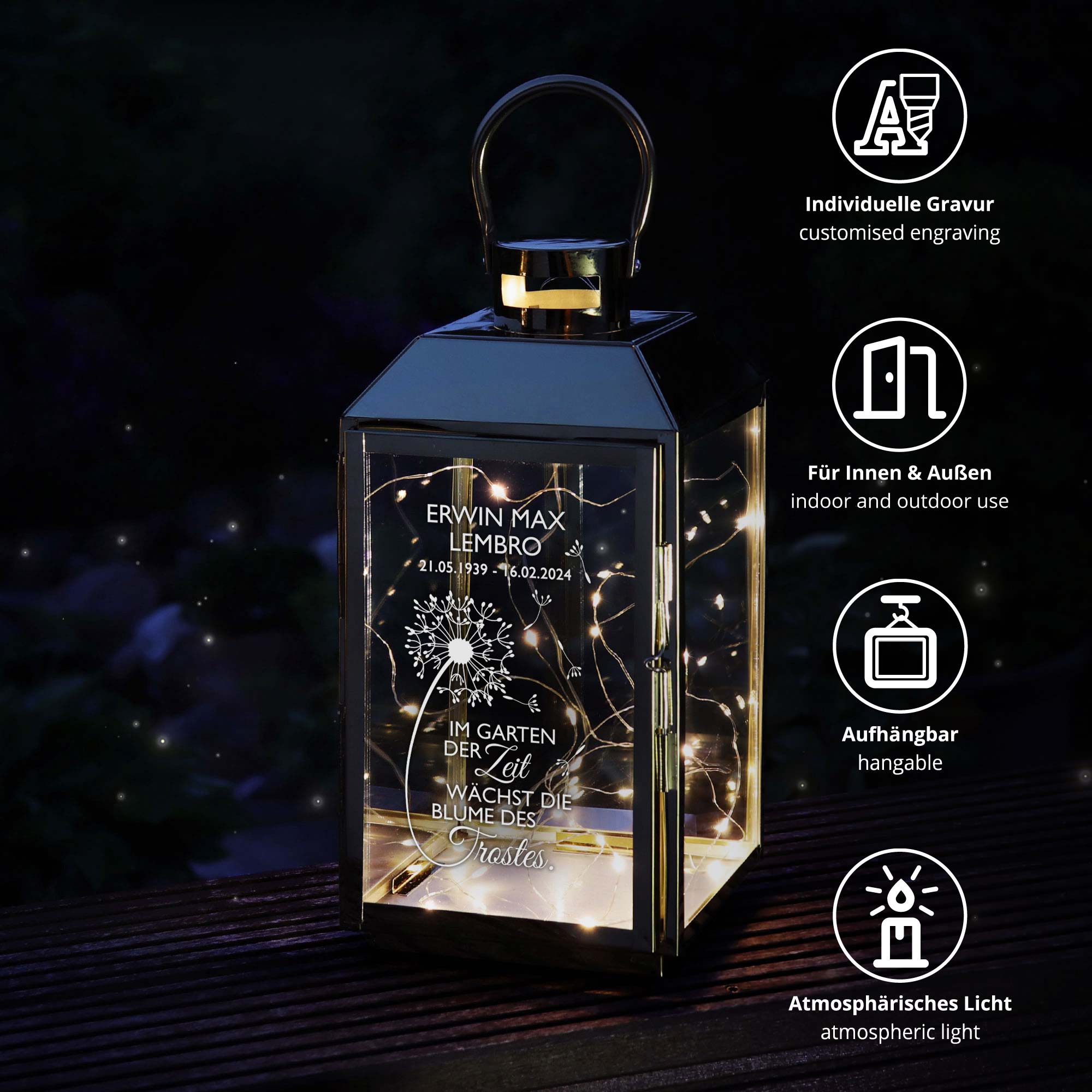 Personalisierte Gold Laterne mit Gravur - Trauerblume
