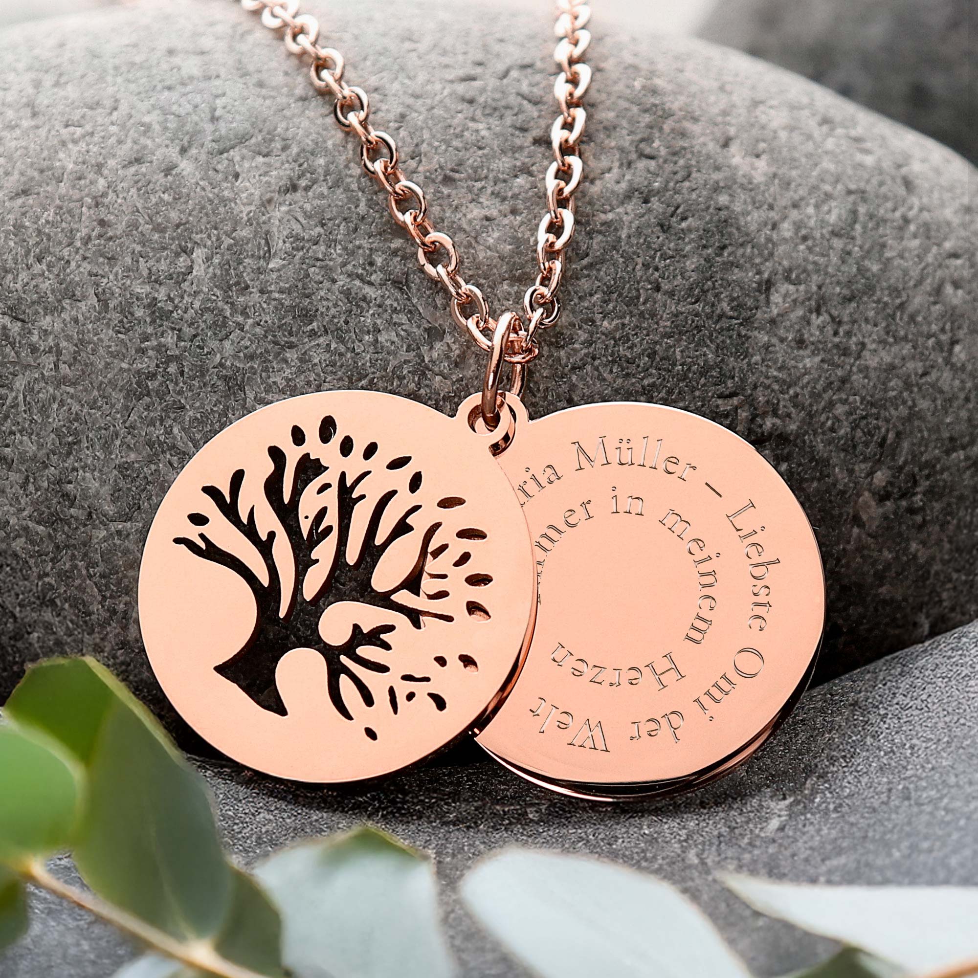 Personalisierte Halskette Roségold mit 2 Anhängern - Lebensbaum