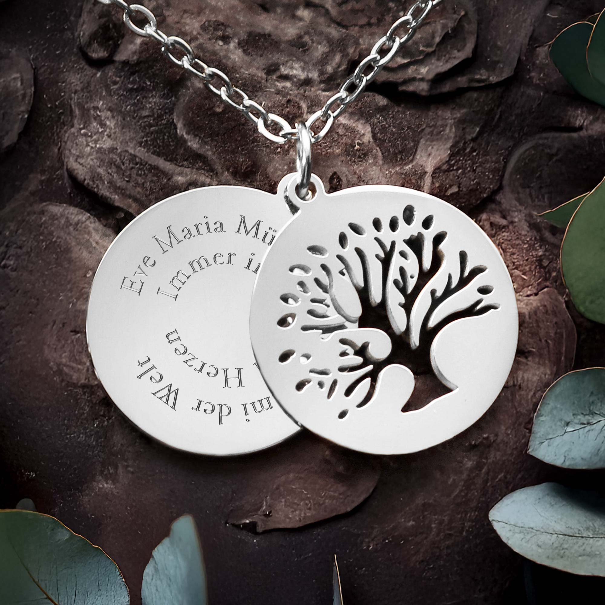 Personalisierte Halskette Silber mit 2 Anhängern - Lebensbaum