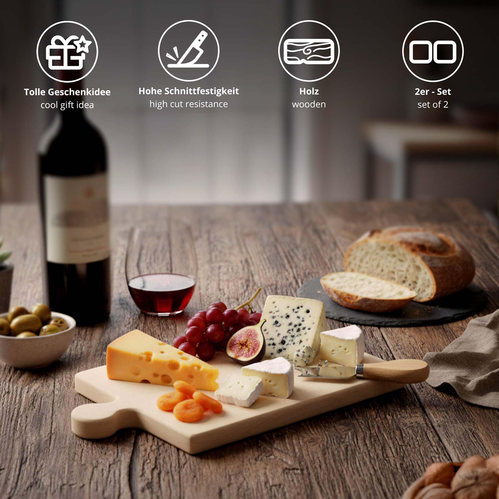 Die perfekte Geschenkidee für koch-begeisterte Freunde zu einem feierlichen Anlass wie Geburtstag oder Weihnachten. Ein schönes Schneidebrett Set für alle Fälle, das mit dem einfachen Steckmechanismus für Erstaunen sorgen wird!
