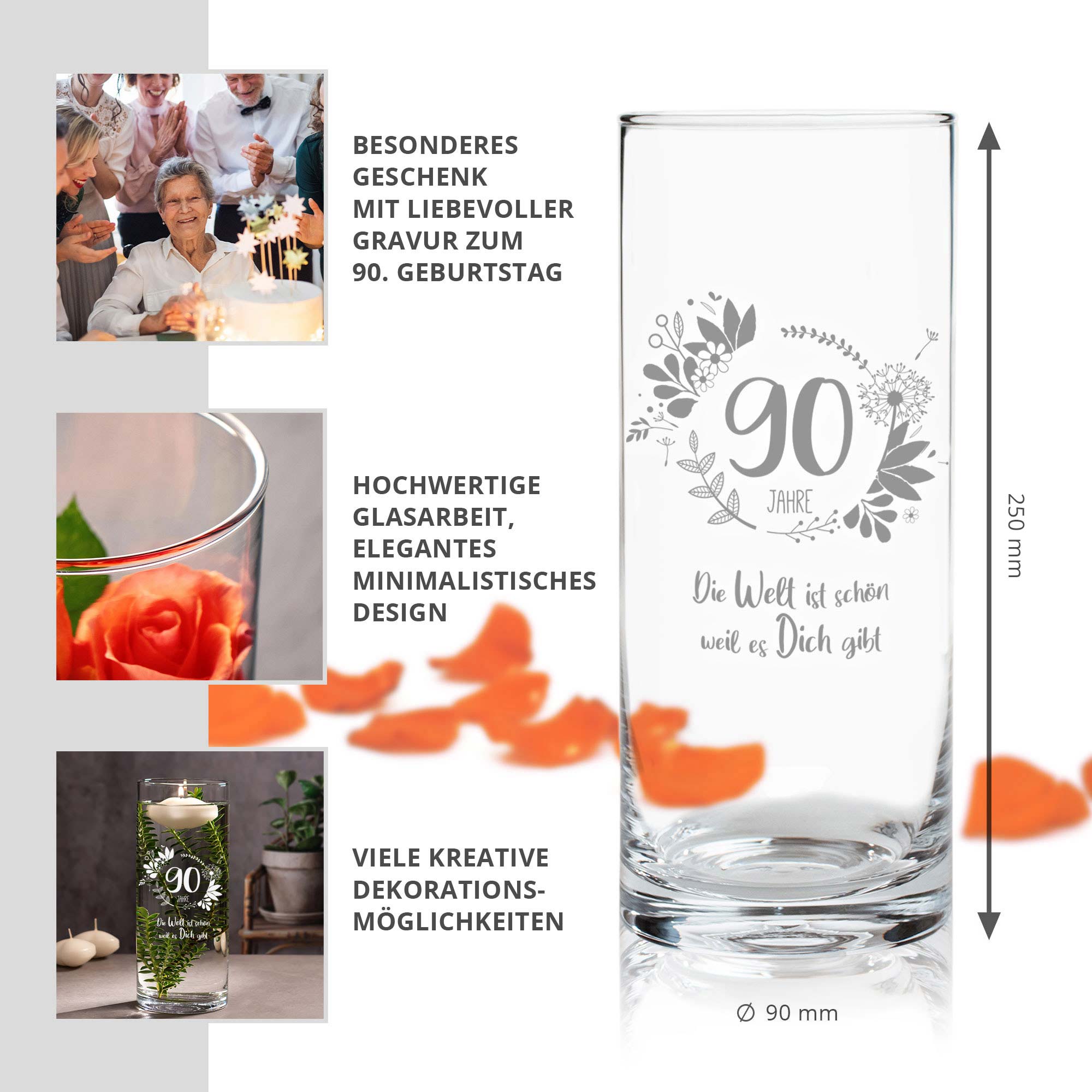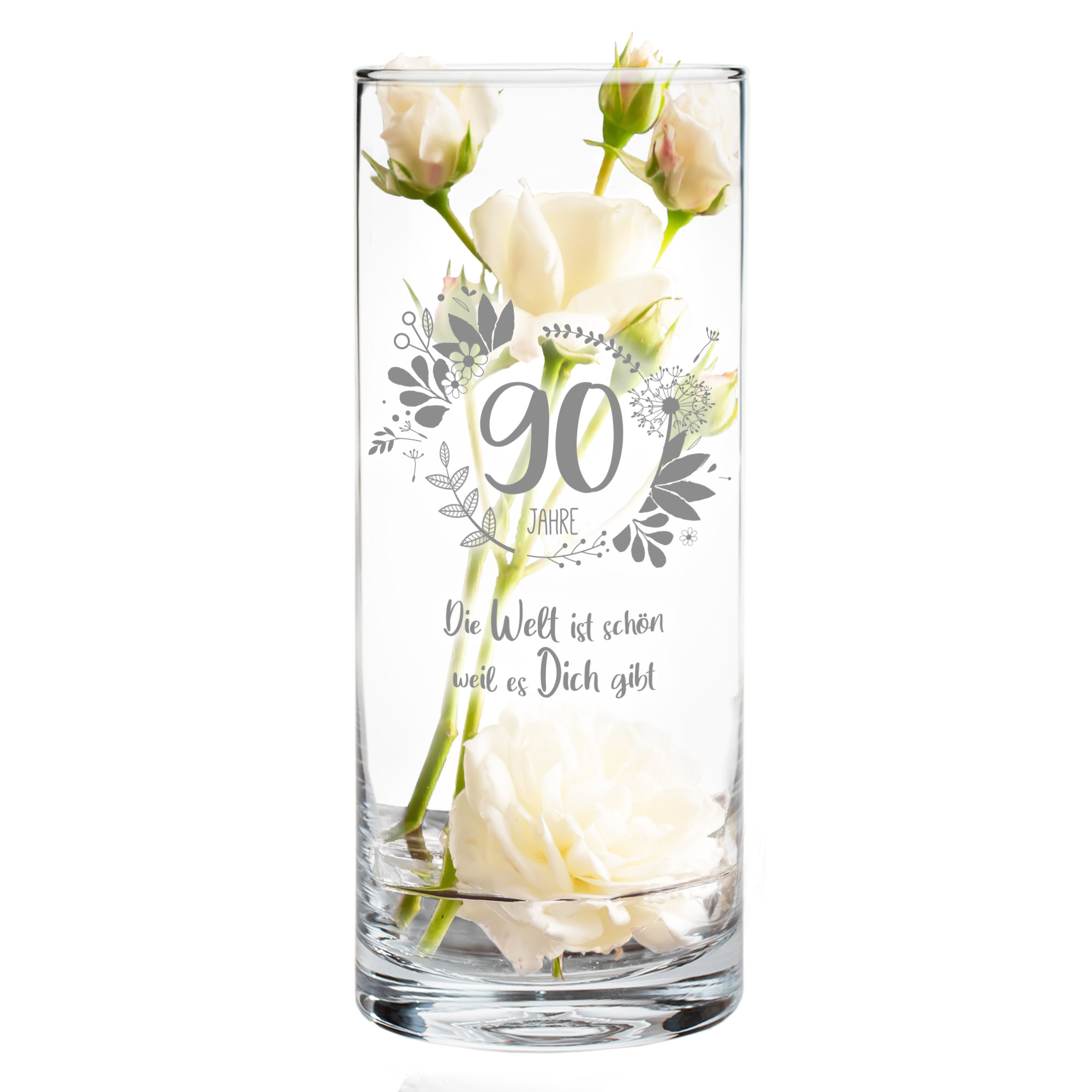 Mit schlichter Eleganz und einem liebevollen Schriftzug beeindruckt die runde Vase mit Gravur, die speziell zum 90. Geburtstag gestaltet wurde. Diese Vase besticht durch ihre zurückhaltende Optik und zugleich ihre tiefe emotionale Bedeutung. Durch die kunstvolle Gravur des Alters und des einfühlsamen Schriftzugs wird diese Vase zu einem außergewöhnlichen Geschenk, das dem Empfänger für immer im Gedächtnis bleiben wird!