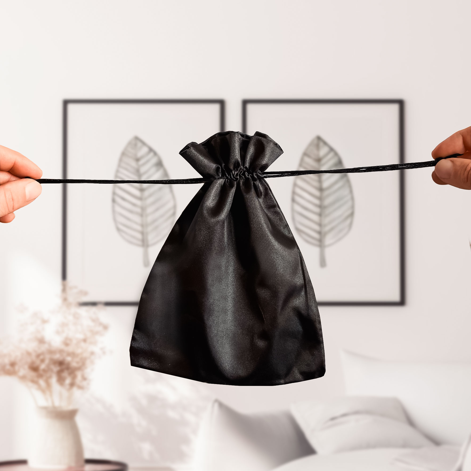 - Edler Satin Aufbewahrungsbeutel in Schwarz